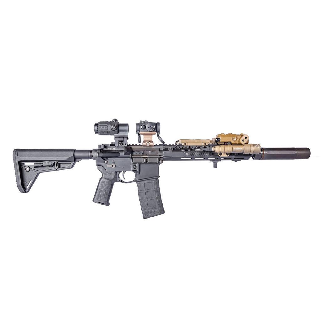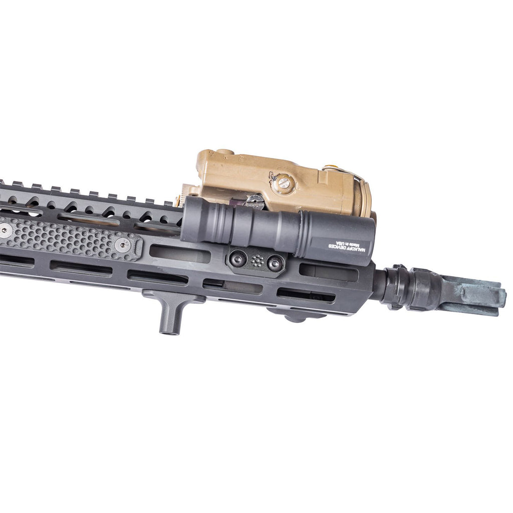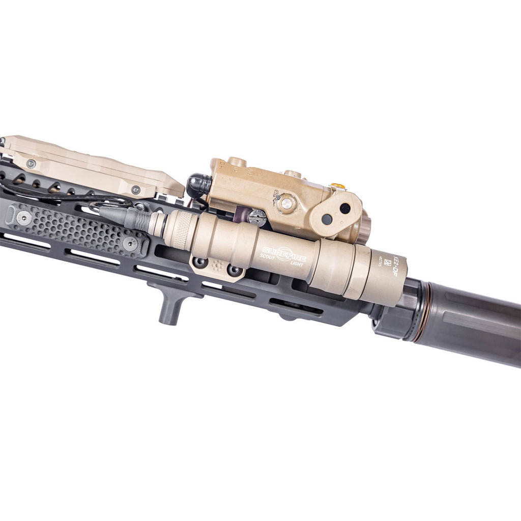 The Arisaka Side Scout Mount (SSM) is designed for use with Surefire Scout Light M600 and M300, the Arisaka 300 and 600 Series Lights, Modlite Rifle Lights, Cloud Defensive Rifle Lights, and the Streamlight Protac Rail Mount 1, 2, and HL-X.. It replaces the stock Picatinny rail adapter with a low profile mount for M-Lok handguards, and tucks the light underneath either side of the ATPIAL laser/illuminator series, including the ATPIAL-C, AN/PEQ15, and LA-5/PEQ. It will also allow the light to clear the QD lever on the Steiner DBAL I2, A3, and D2.
