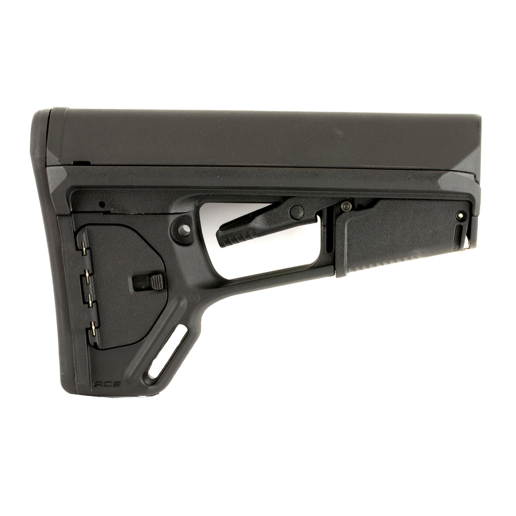 The Magpul ACS-L (Adaptable Carbine Stock - Light) is a drop-in replacement buttstock for AR15/M4 carbines using mil-spec sized receiver extension tubes. A streamlined version of the ACS, the ACS-L utilizes the same center storage compartment and cheek weld but removes the battery tubes for a slimmer, lighter weight package.