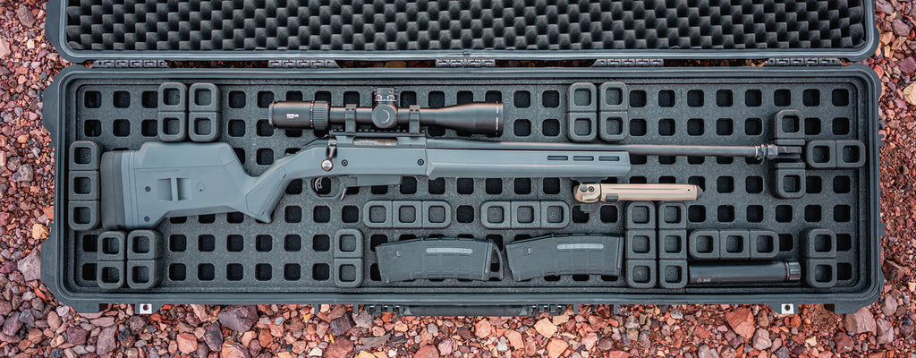 Magpul's DAKA GRID Organizer is a fully customizable drop-in organizational solution that secures and protects your important equipment when it's stored or transported in your existing hard case. Specifically designed to fit Pelican 1750 Protector, Harbor Freight Apache 9800, and Eylar 53" gun cases, the GRID Organizer is completely reconfigurable to meet your storage needs. Individual Expanded Polypropylene (EPP) Panels and Blocks nest together securely to maximize protection, versatility, and ease-of-use. They can be organized to support and immobilize rifles, optics, ammunition, accessories, and other gear, and they can be quickly removed and reinstalled for your next loadout. The lightweight GRID system uses compression to immobilize and compartmentalize your gear, firmly holding it in place and providing advanced protection during transport. The result is less movement and better impact resistance for your gear than you'll get from current open cell foam options that can let your gear slide around inside your case during transport. Also, the GRID's EPP make up doesn't absorb contaminants like open cell foam does, providing resistance to liquid and chemical intrusion and mitigating contamination of your gear. Cleaning up dirt, chemicals, and liquids is easy with just a damp cloth.