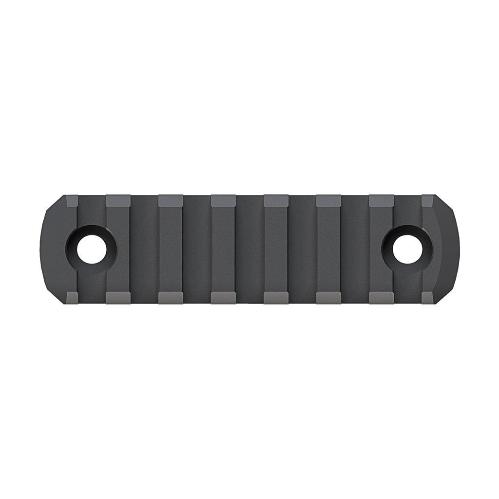 Designed for use with all M-LOK compatible Hand Guards and Forends, M-LOK Aluminum Rail Sections allow the attachment of various 1913 Picatinny spec rail-mounted accessories such as lights, vertical grips, etc. Machined from milspec-anodized aluminum, M-LOK Rail Sections also feature beveled ends to reduce snagging and eliminate sharp corners and edges. All hardware necessary for attachment directly to M-LOK Slots on either aluminum or polymer hand guards and forends is included. 7 Slots, max overall length of 3.3". Made in U.S.A.