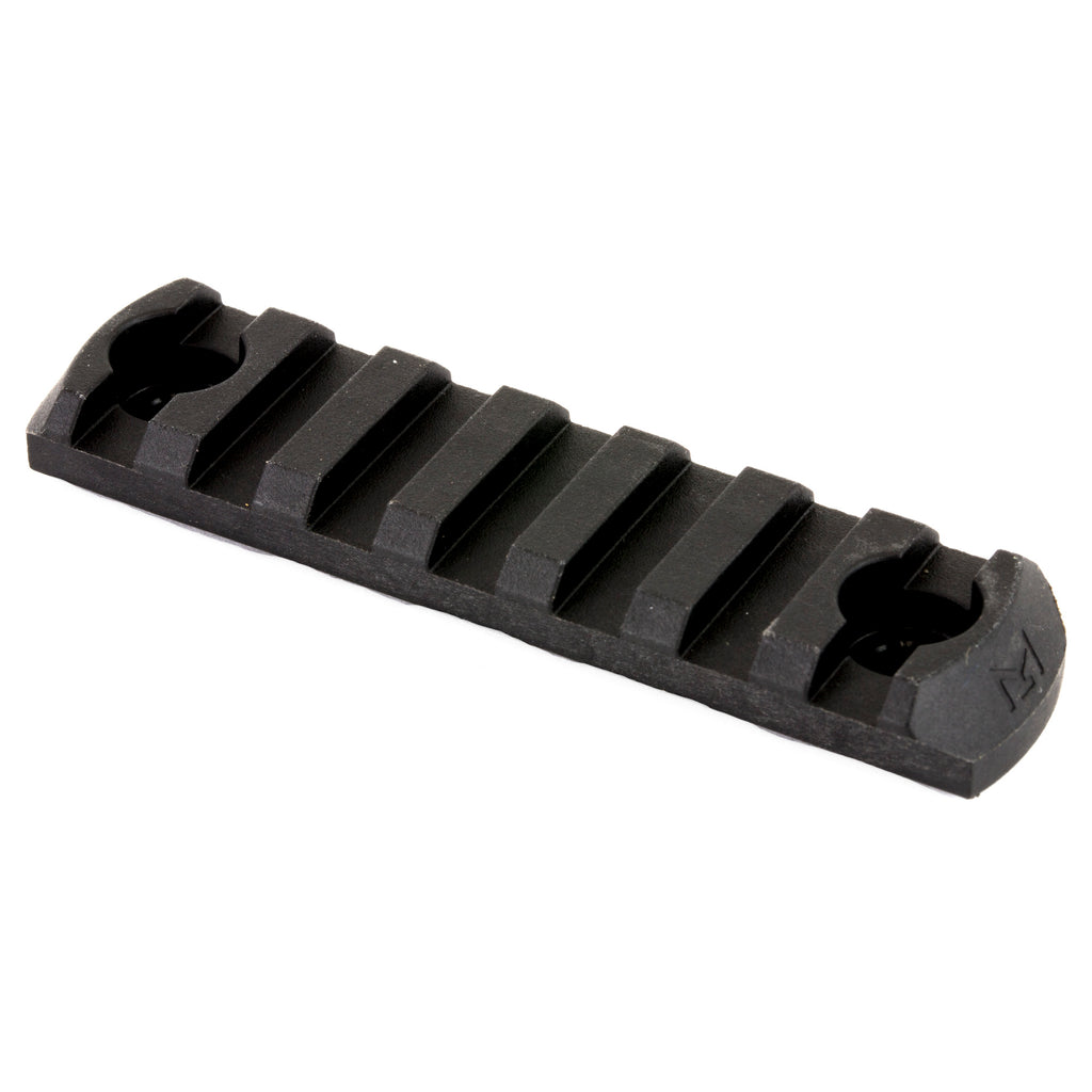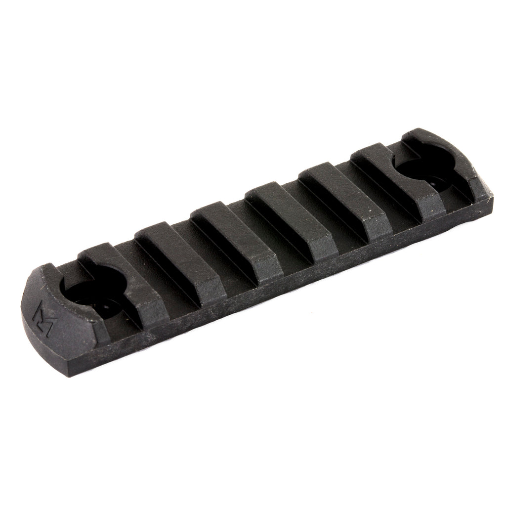 Designed for use with all M-LOK compatible Hand Guards and Forends, M-LOK Polymer Rail Sections provide a cost effective method of attaching various 1913 Picatinny spec rail-mounted accessories such as lights, vertical grips, etc. Injection molded from a proprietary reinforced composite for enhanced strength and durability while remaining lightweight, Rail Sections also feature beveled ends to reduce snagging and eliminate sharp corners and edges. All hardware necessary for attachment directly to M-LOK Slots on either aluminum or polymer hand guards and forends is included. 7 Slots, max overall length of 3.3 in. Made in U.S.A.