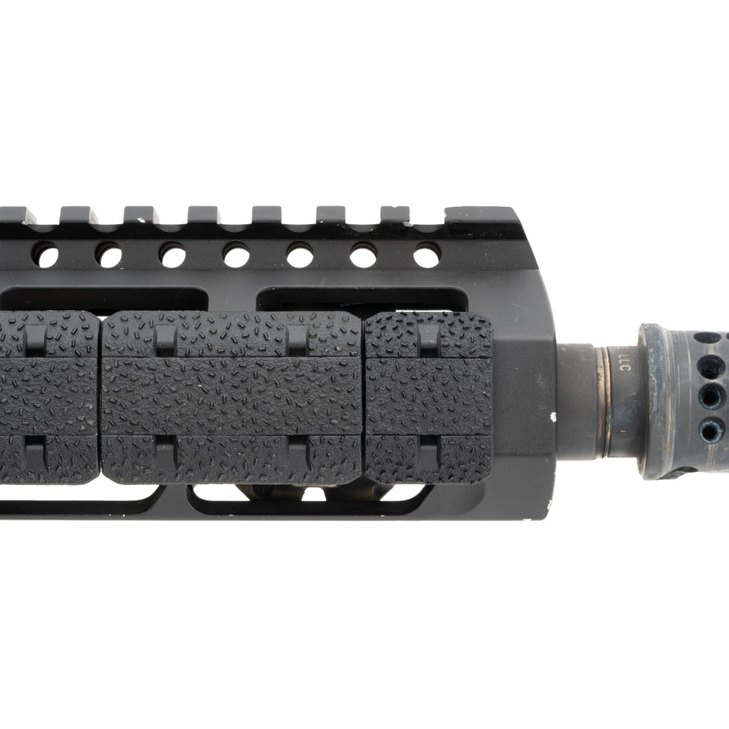 M-LOK Type 2 Half Slot Rail Covers are low-profile, two-piece covers that install directly onto most full and half size M-LOK aluminum hand guards (not compatible with polymer hand guards). Designed to work in conjunction with full size M-LOK Type 2 Rail Covers, Half Slot Rail Covers can be used to fill extra space left by full size Covers and other accessories - allowing for more customization and coverage of your hand guard. M-LOK Type 2 Half Slot Rail Covers are non-orientation specific, which allows the user to mount them in any direction desired without affecting function. The M-LOK Type 2 Half Slot Rail Covers features beveled contours to minimize potential snagging, their TSP texture for additional grip, and protruding just 1/8" from the mounting surface to maintain its low-profile. The center locking tab is pre-scored to allow the user to snap off sections and mix and match colors for a customized look. Includes four panels, each covering half an M-LOK slot. Not compatible with Magpul MOE M-LOK, MOE SL and SGA forends, and may not be compatible with free-float handguards that have a wider and flatter profile; they will not seat deep enough to allow the center portion to lock in. Made in the USA.