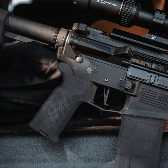Similar in concept to the MOE-K, the MOE-K2 is a drop in upgrade for the AR15 / M4 that offers a more vertical grip angle, but in a full-size grip design. The steeper vertical grip angle is optimized for use on PDW (Personal Defense Weapon) configurations and improves comfort and control on short LOP rifles that bring the primary hand in closer to the shooter's body.
