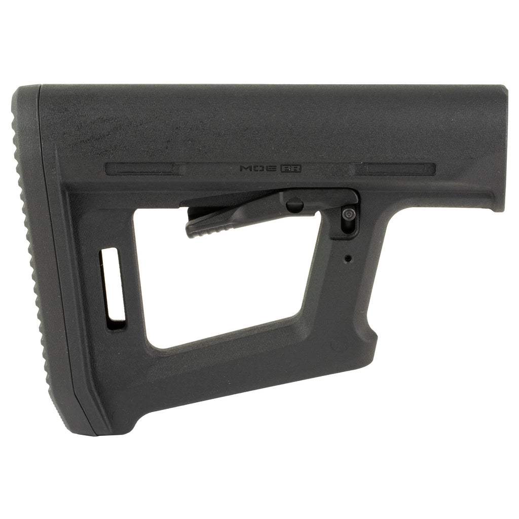 The MOE PR is a full-size carbine stock that blends the simplicity of the legacy MOE Carbine Stock with design lines reminiscent of the PRS Lite. These similarities naturally incorporate some of the features found on the PRS Lite, including a rest on the front edge of the stock for the support hand that allows shooters to apply rearward pressure to drive the stock securely into the shoulder for precise shot placement, and the bottom of the stock's frame also serves as a bag rider. Other features include a sloping cheek weld that combines a slim profile with user comfort, and a non-slip, rubber butt-pad that increases impact protection and allows for easier shoulder transitions and better fit with body armor. With an M-LOK slot molded into the rear of the stock, shooters can attach a sling using the slot as a footman's loop or by adding the Magpul M-LOK QD Sling Mount to one or both sides of the M-LOK slot.