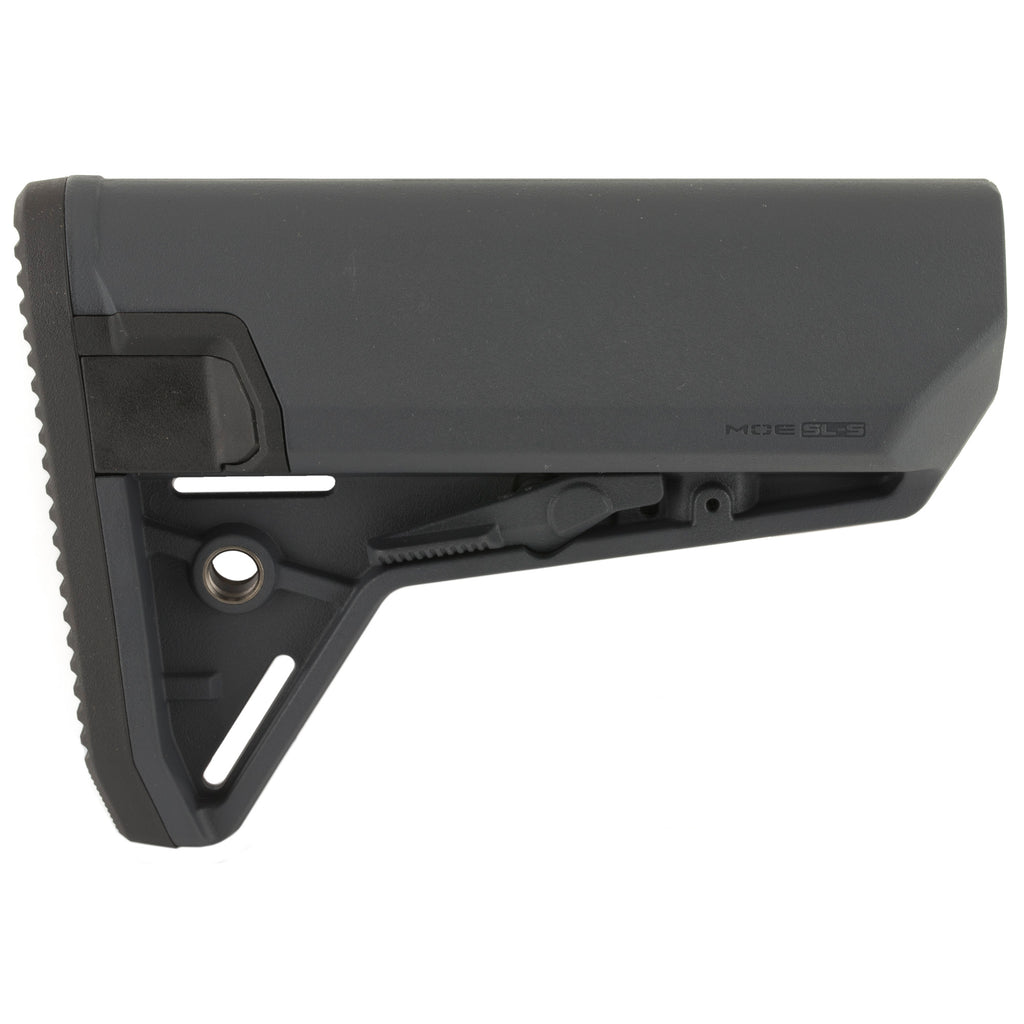 The storage-capable version of the flagship Magpul MOE SL carbine stock, the MOE SL-S (Storage) Stock is a direct replacement buttstock for AR15/M4 carbines. The sleek profile, dual-side release latches, and waterproof battery tubes make it the slimmest storage tube stock available. The SL-S provides an enhanced cheek weld and true, O-ring sealed, 10m waterproof storage area desired by many, but fits it into the narrowest package possible to allow a more upright head position and minimize bulk. A rolled toe and angled rubber butt-pad are optimized for use with body armor, and an ambidextrous QD sling swivel socket is included. A unique leaf-spring tension system provides a solid fit on mil-spec receiver extensions, with slightly less friction than the original SL. The MOE SL-S is the most intuitive, comfortable, and efficient storage stock available. Made in U.S.A.