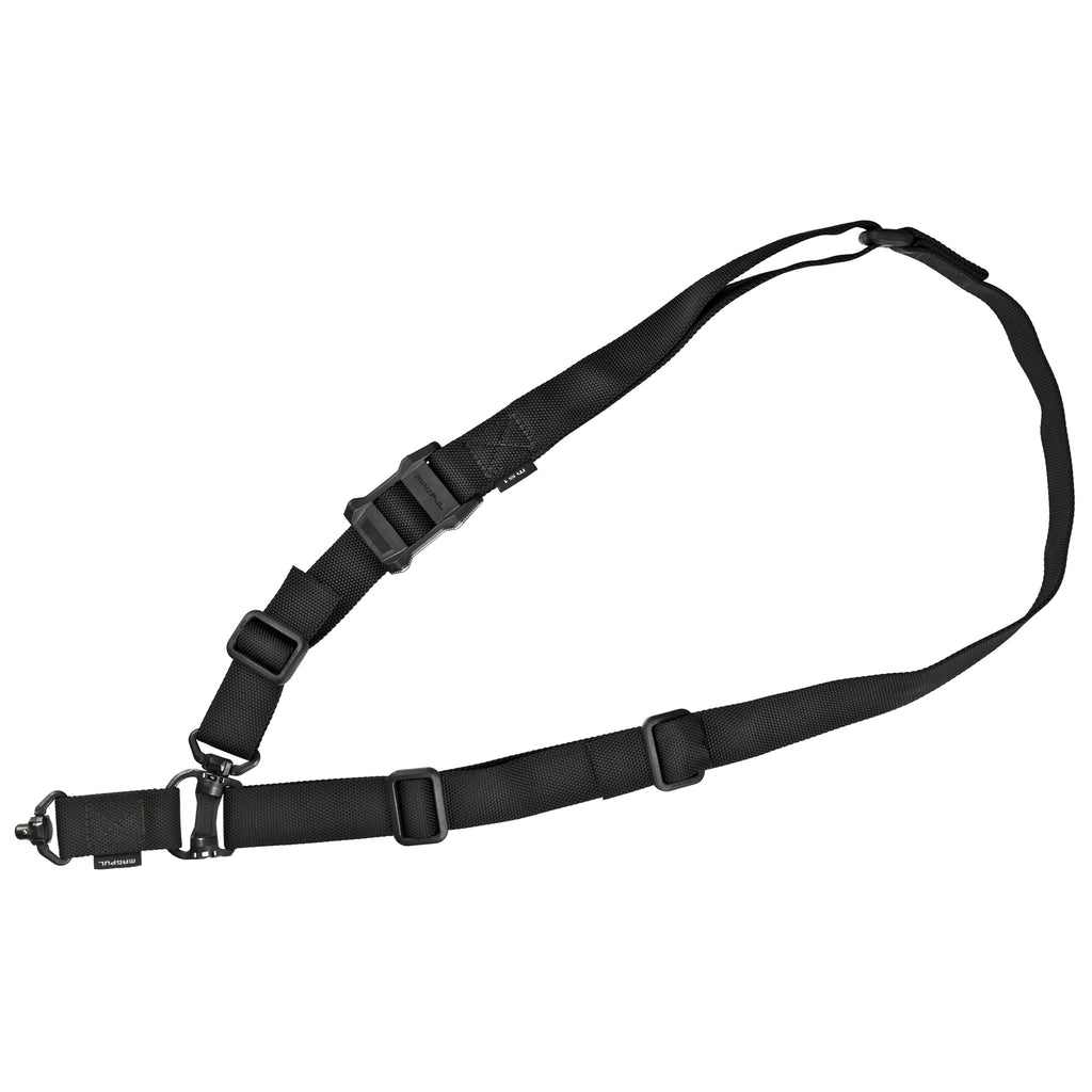 Quickly reconfigurable between one-point and two-point operation, the Magpul(R) MS4 QDM Sling enhances the proven MS4 Dual QD Sling Gen2 by including factory-installed Magpul QDM quick-disconnect swivels. As a heavy-duty replacement for the typical push-button swivel, the Magpul QDM offers an innovative low-profile design, single-handed manipulation, a superior corrosion-resistant Melonite(R) finish, and a high-strength, freely rotating bale that canalizes sling webbing to prevent rollover. This sling system not only provides the strength, speed and security of Magpul QDM hardware, but also maintains compatibility with the standard QD sling cup interface found on many handguards, lower receivers, receiver end plates and buttstocks. Based on the streamlined two-point MS1(R) Sling adjustment system, the Magpul MS4 QDM Sling retains the low-profile quick-adjust slider which minimizes bulk and allows for secure, yet effortless adjustment. Webbing length is optimized for a comfortable fit with all body types and body armor configurations. The Magpul MS4 QDM Sling is made in the U.S.A. and is fully Berry Amendment compliant.