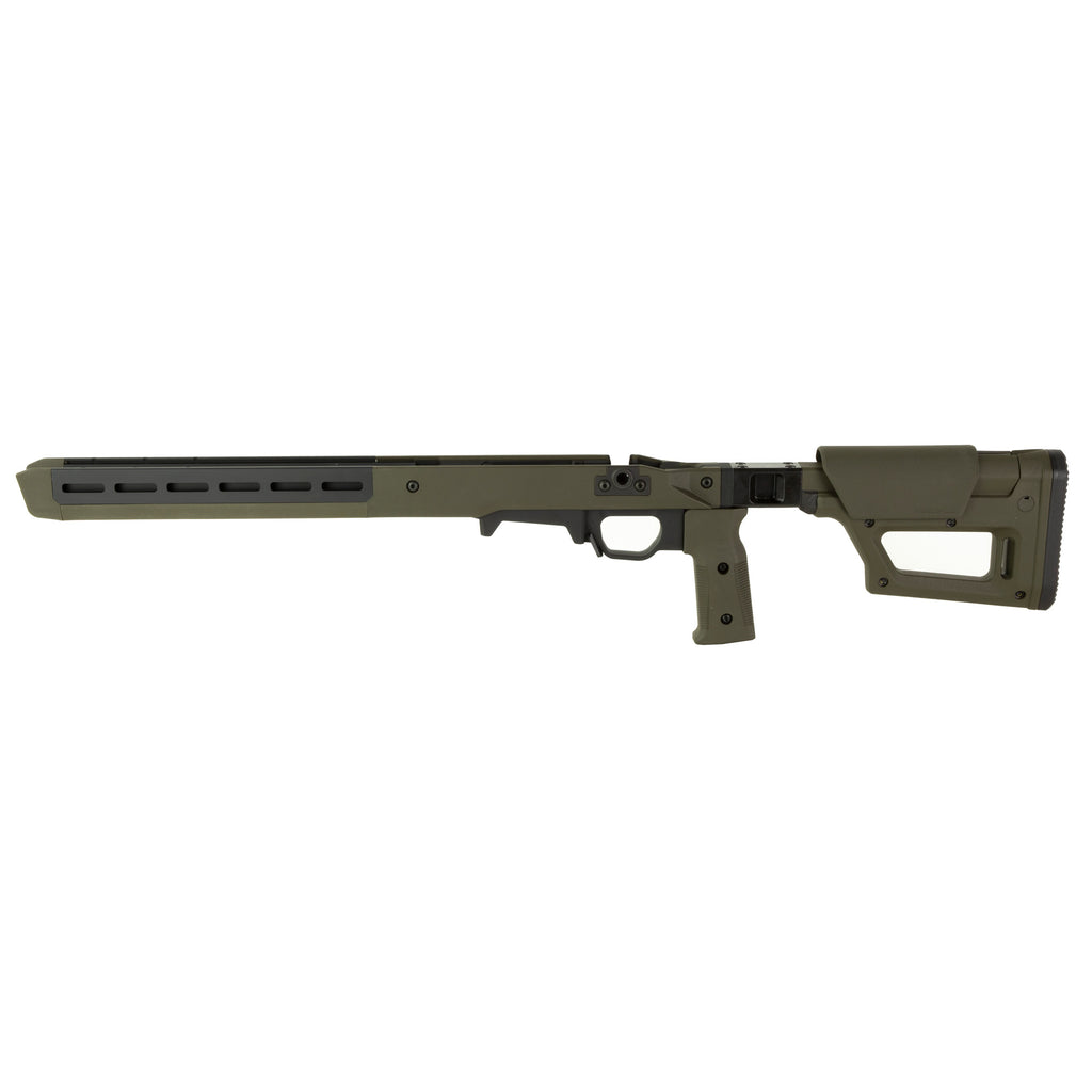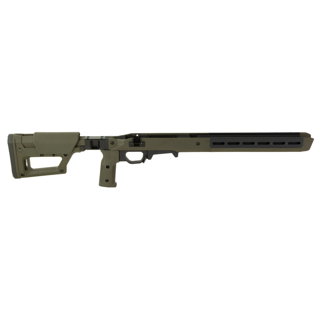 The Pro 700 Lite surrounds it's billet aluminum chassis with Magpul polymer for enhanced ergonomics, strength, and sound mitigation. Built around the user, it is fully ambidextrous at the swap of a bolt retainer plate, and the vertical grip can be adjusted for various trigger reaches. The included large trigger guard can accommodate usage with gloves and aftermarket triggers. The AICS-pattern magazine well features an ambidextrous mag release and has a front barricade stop to prevent the rifle from resting on the magazine when using barricade support. Up front, there are numerous M-LOK slots (left-6/right-6/bottom-7) allowing you to mount whatever accessories your loadout calls for. As the name suggests, the Pro 700 Lite blends the original Pro 700 Chassis and the PRS Lite stock to create a simplified rear end with a strong foundation - passing on the value and weight savings to you. The streamlined design weighs in at 4.4 pounds, a full pound less than its predecessor, but still packs a complete set of features that elevate your rifle's performance.