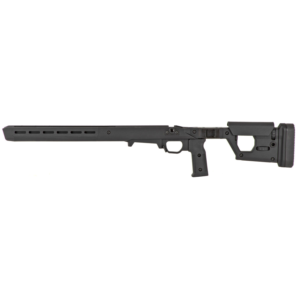 The Magpul Pro 700L Rifle Chassis is an uncompromising, full featured precision rifle chassis for long action Remington 700 and Remington 700-footprint rifles. The Pro 700L combines innovative engineering, precision machining, Mil-Spec quality finishes, and an extensive list of purposeful design features with complete adjustability to provide demanding end users with the most comprehensive available precision rifle platform solution for true out of the box performance. Based on a fully machined aluminum skeleton and clad in Magpul polymer for environmental comfort, noise mitigation, and ergonomics, the Pro 700L is also fully ambidextrous. Capable of fitting both right and left-handed actions with the simple swap of a bolt-cutout plate, it also includes a reversible cheek riser and overall length of pull adjustment range of 13.25 to 15.125". Compatible with most long action AICS pattern detachable box magazines.
