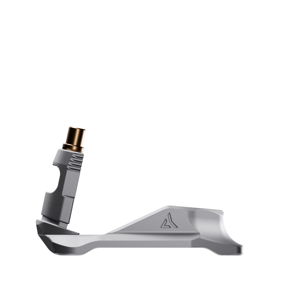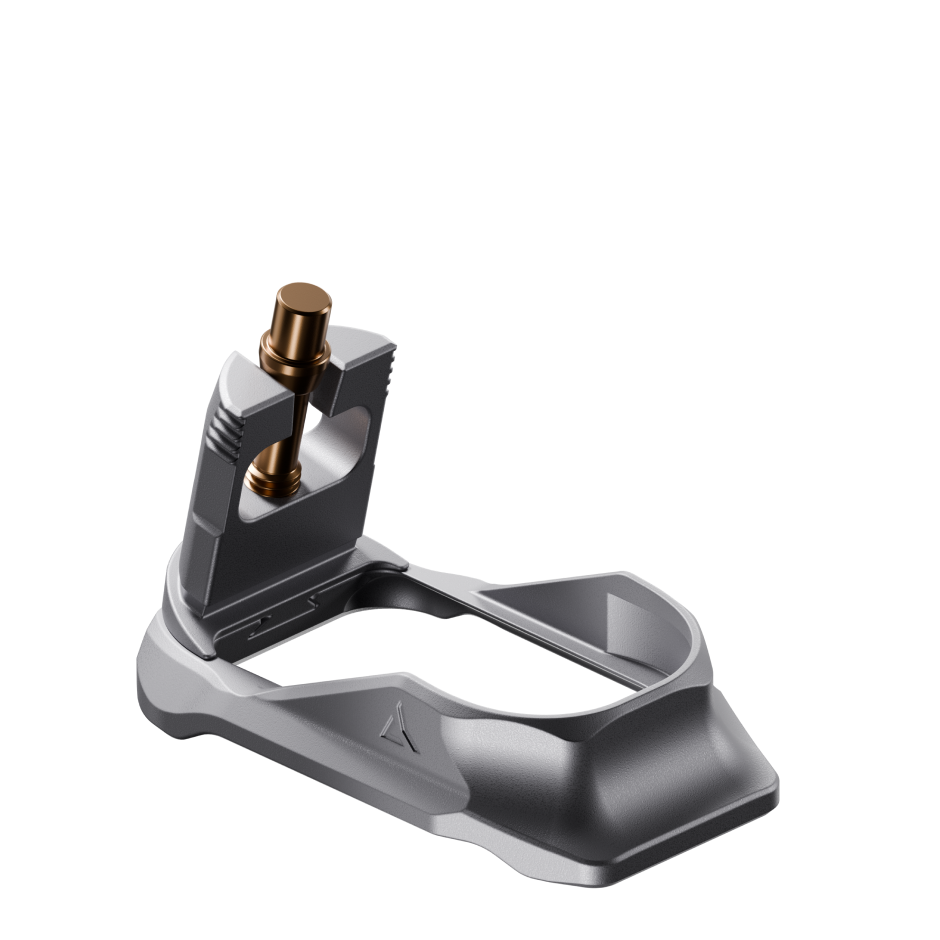 The Radian ANCHOR + MAGWELL for Glock provides a secure grip and easy reloading. A tapered screw pushes the patented PLANAR-LOK outward, causing barbed teeth to bite into the interior frame walls and lock the ANCHOR in place. This patented design prevents inward wall flex, stopping magazine bind, even with large-capacity magazines. The MAGWELL dovetails into the ANCHOR at the rear, with its tooth biting into the front of the frame. The patented ANGLE-LOK detent pushes the MAGWELL backward into position, completing the system's three-way lock.