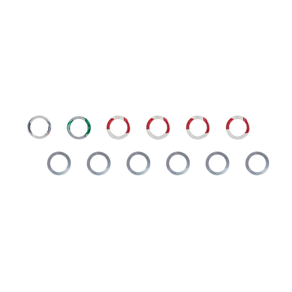 SureFire SOCOM shim kits help ensure precise timing of SureFire SOCOM muzzle devices on a rifle barrel. Each kit includes shims with different thicknesses. The shims can be used alone or combined to achieve proper muzzle device alignment. Constructed from 300-series stainless steel for durability and long service life. Shims are color-coded, no need to measure to ensure proper thickness.