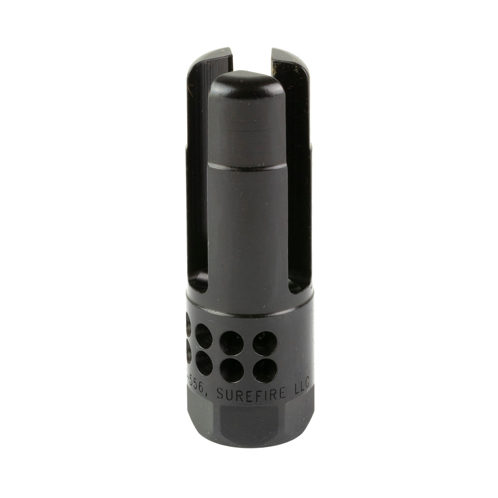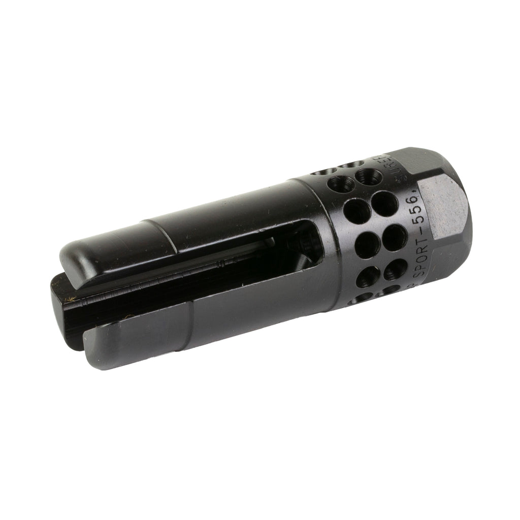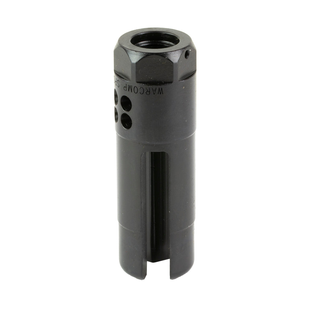 Flash hider? Muzzle brake? The proprietary design of SureFire's WARCOMP SPORT flash hiders provides the best attributes of both devices. The SureFire WARCOMP SPORT incorporates the essential features of the world's most shoot-able flash hider, the SureFire WARCOMP, in a model designed specifically for use on an unsuppressed rifle or carbine. Its expertly designed porting significantly reduces both muzzle flash and muzzle rise, helping to conceal your location and preserve dark-adapted vision, while helping you stay on target for faster follow-up shots. The WARCOMP SPORT effectively eliminates 98% of all muzzle flash, even on short-barreled rifles. All WARCOMP SPORT flash hiders are precision-machined from heat-treated U.S. mill-certified chromoly bar stock for extreme durability and corrosion resistance, and Nitride QPQ-coated for wear resistance and ease of maintenance. Installation requires no permanent modifications to the weapon system. Note: The WARCOMP SPORT is not compatible with SureFire suppressors